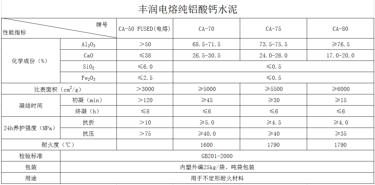 豐潤冶金材料有限公司純鋁酸鈣水泥性能綜述